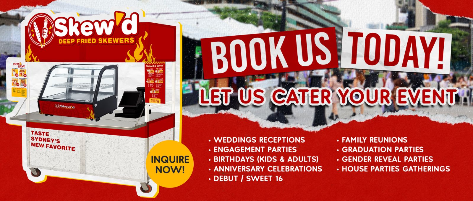 Welcome to Skew'd, where quality meets flavor in our deep fried skewers inspired by Sydney's new favorite.